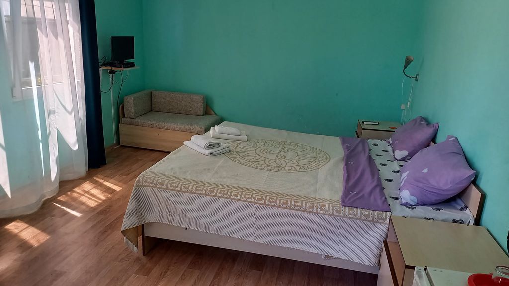 В номерах: кондиционер, холодильник, санузел, телевизор Wi-fi,так же есть свой балкон, где можно приятно посидеть вечерком.